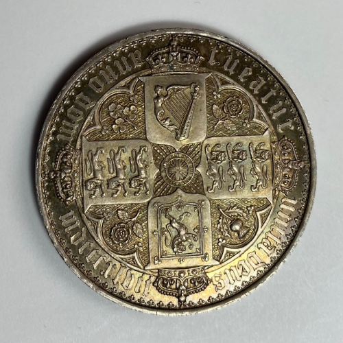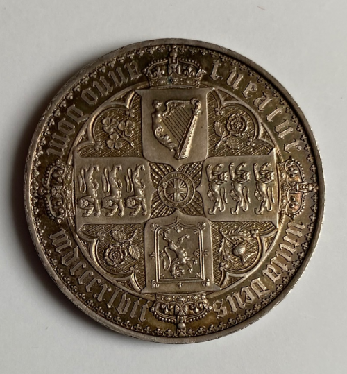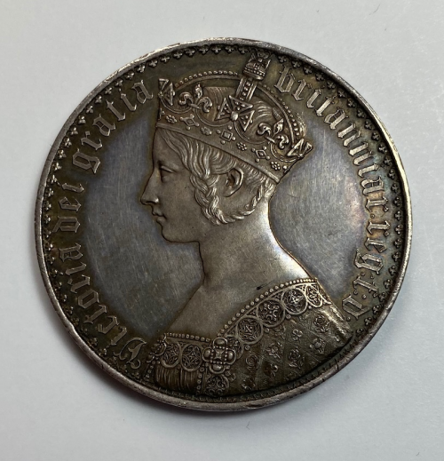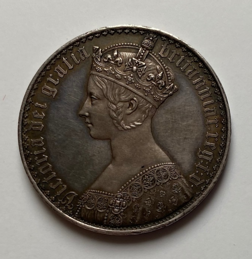 自然光、室内照明での写真を追加 1847年 英国 ゴチッククラウン UNDECIMO 銀貨