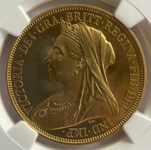 ヴィクトリア女王ヴェールヘッドの5ポンドプルーフ金貨 NGC PF62 CAMEOになります。発送までに3週間ほどお時間を頂戴いたします。