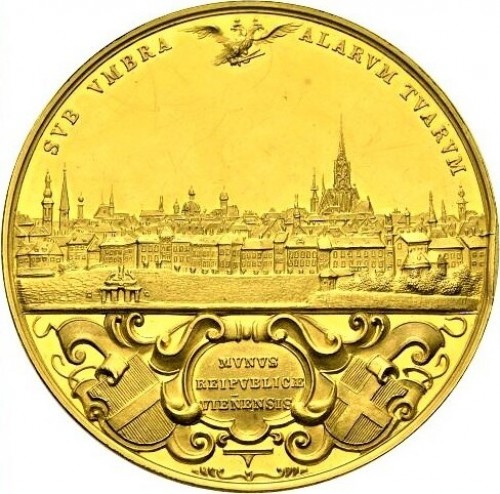 裏面:ウィーンの都市景観(中央にそびえ立つのは1359年に完成された世界遺産でもあるシュテファン大聖堂)