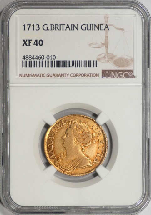 1713年 英国 アン女王 ギニー金貨 NGC XF40