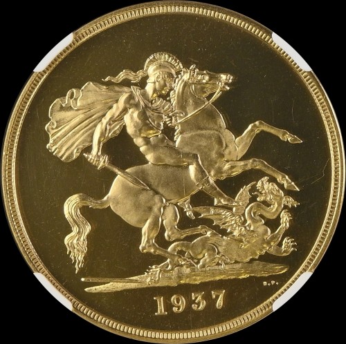 高鑑定 1937年 英国 ジョージ6世 5ポンドプルーフ金貨 NGC PF65 ULTRA CAMEO