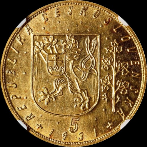 1931年 チェコスロバキア 5ダカット金貨 NGC MS62