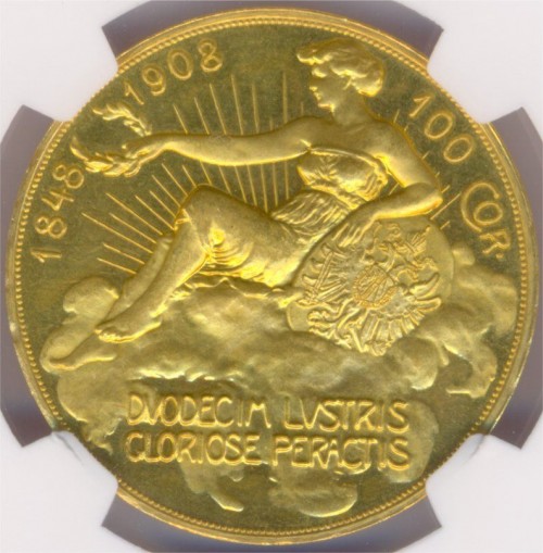 1908年オーストリア100コロナ金貨 雲上の女神 NGC PF62 CAMEO
