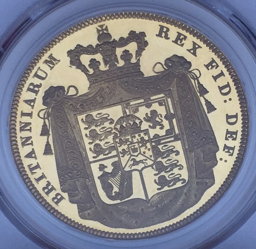 5ポンドは150枚、それ以外は450枚と圧倒的に発行枚数の少ないジョージ4世のプルーフ金貨です。