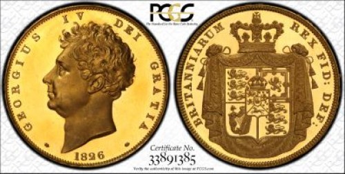 1826年英国ジョージ4世5ポンドプルーフ金貨 PCGS PR63+ DCAM