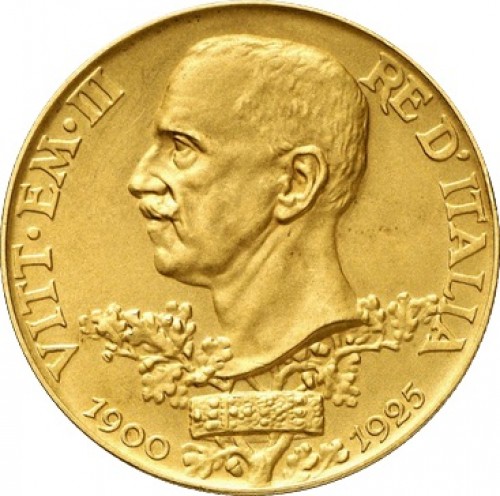 1925年 イタリア 100リラ金貨 リレ ヴィットリオ エマヌエレ3世 統治25周年