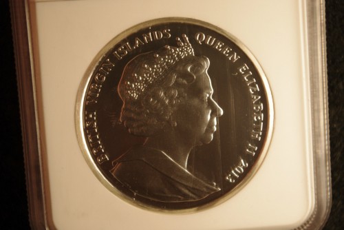 ケネディーとエリザベス2世が表と裏に。珍しい金貨です。英国領ヴァージン諸島発行のウルトラハイリリーフ金貨と銀貨のセットです。金貨はNGC PF70, 銀貨はPF69の高鑑定です。