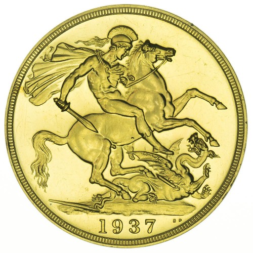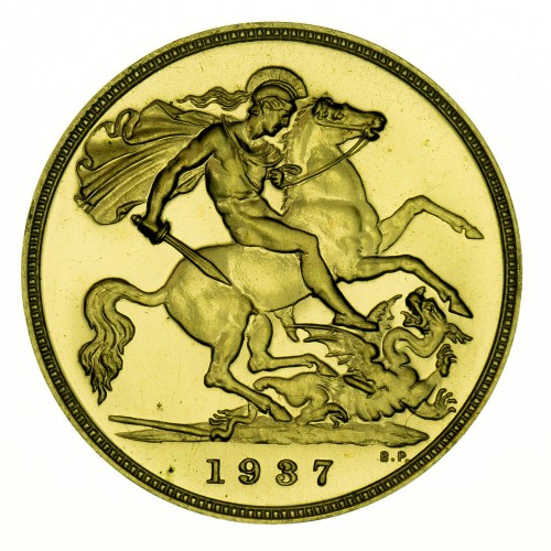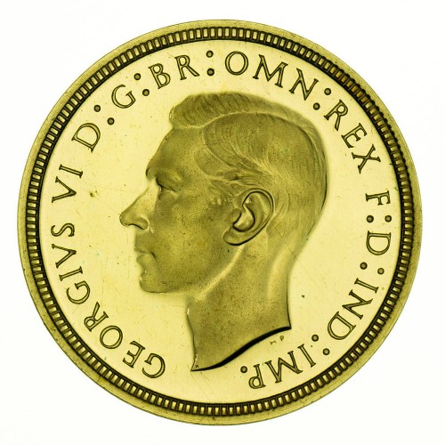 「英国王のスピーチ」の映画で感動された方も多数いらっしゃると思いますが、美男子で知られる現エリザベス2世の父・ジョージ6世の肖像はアンティーク市場では珍しく女性の収集家からも人気の高い金貨です。裏面は英国の伝統的な図案である聖ジョージの龍退治が描かれています。単年度発行で鏡面状に仕上げられた素晴らしいプルーフ金貨です。