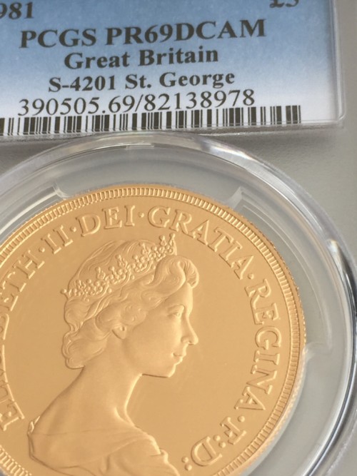 1981年英国 ヤングエリザベス 5ポンドプルーフ金貨 PCGS PR69 DCAM