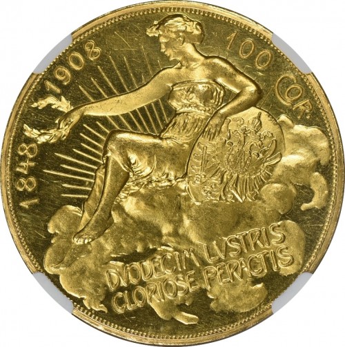 1908年 オーストリア 100コロナプルーフ金貨 雲上の女神 NGC PF62 CAMEO