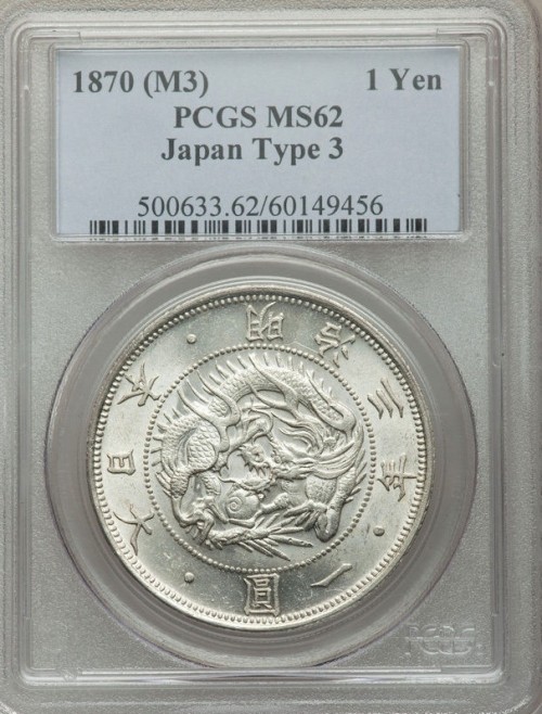 明治3年 (1870) レア欠貝円 1円銀貨 PCGS MS62