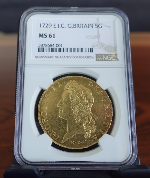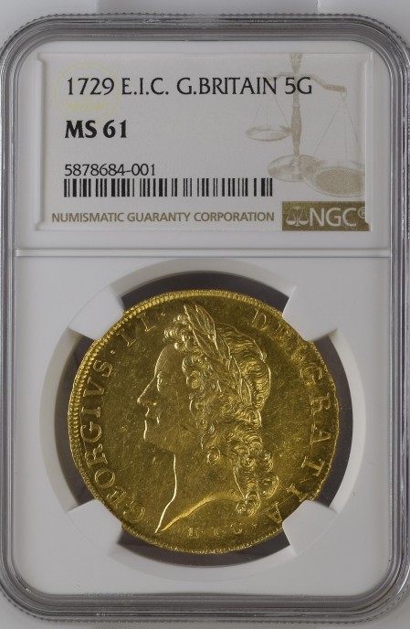 1729年 イギリス ジョージ二世 東インド会社 5ギニー金貨 NGC MS61