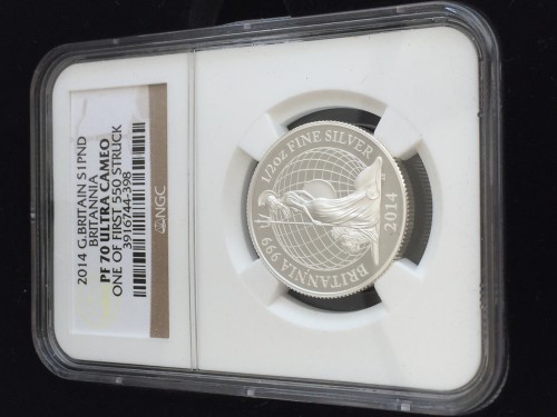 2014年英国プレミアム・ブリタニア プルーフ銀貨5枚セットNGC PF70UC